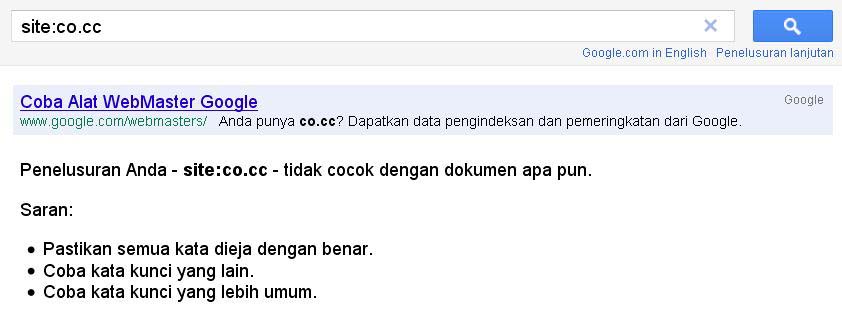 Coba saja anda ketik Site:Co.CC di search engine, pasti hasilnya akan seperti gambar dibawah ini :